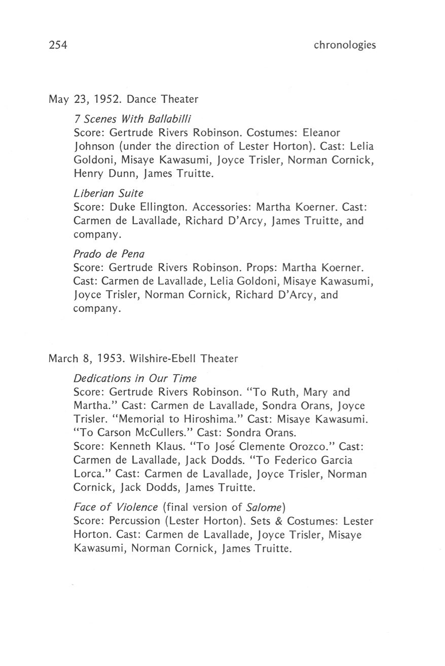 Lester Horton Chronologies