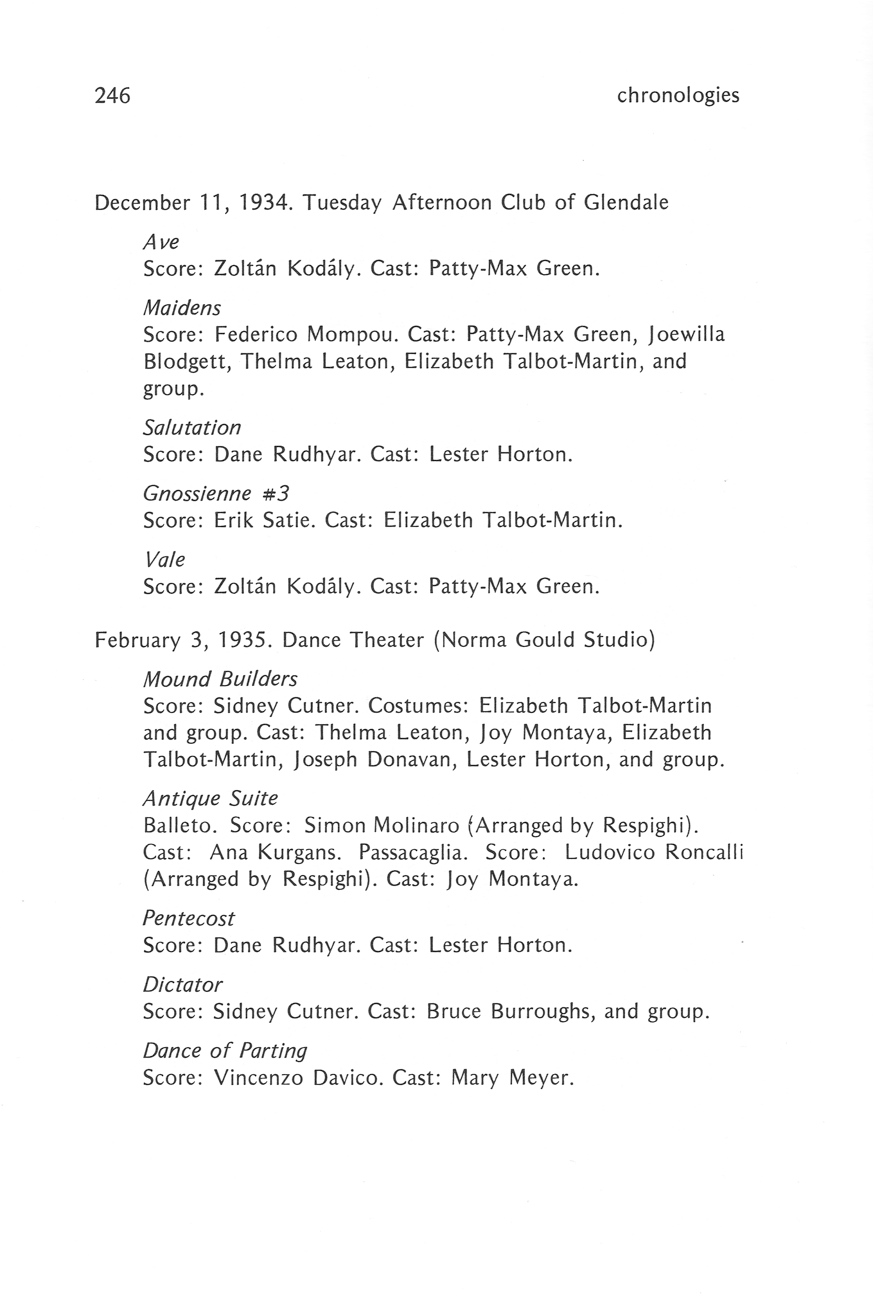 Lester Horton Chronologies