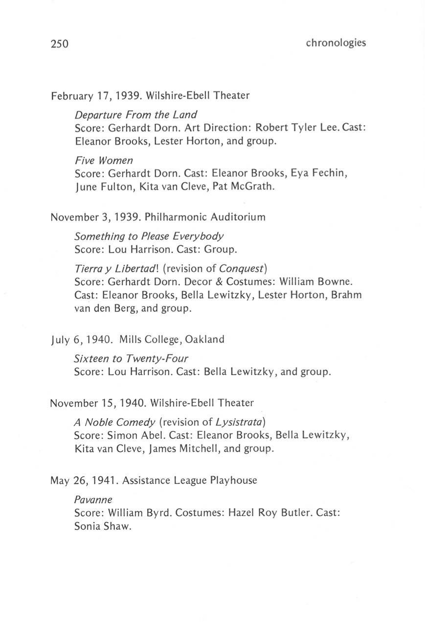 The Dance History Project’s goal is to observe and preserve the history of dance making and performing in Southern California. The focus is on those events and artists, past and present, whose work has been important to the field of live professional dance in Southern California. It includes the contributions of dancers, companies, educators, presenters, artistic collaborators, historians, and critics. More...